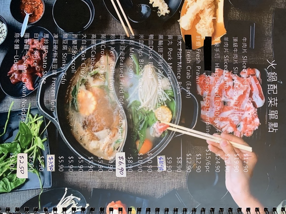 Includes prawn, fish ball, beef or lamb, vermicelli, mushroom and vegetables.